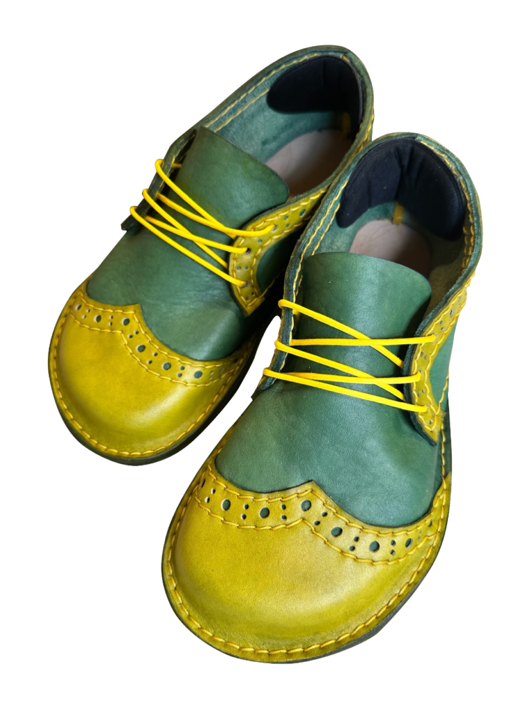 Tyto boty zvládne ušít i šikovný začátečník. V tomto eBooku je detailní popis jak výroby střihu, tak i kompletace celé boty, od stříhání, barvení, přes děrování, šití, až po nalepení podrážky.